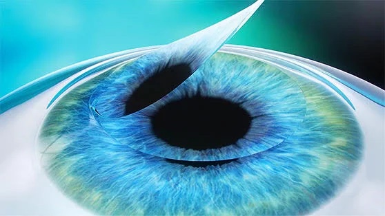 角膜薄片形成後,會把角膜瓣像蓋子一樣往後翻。